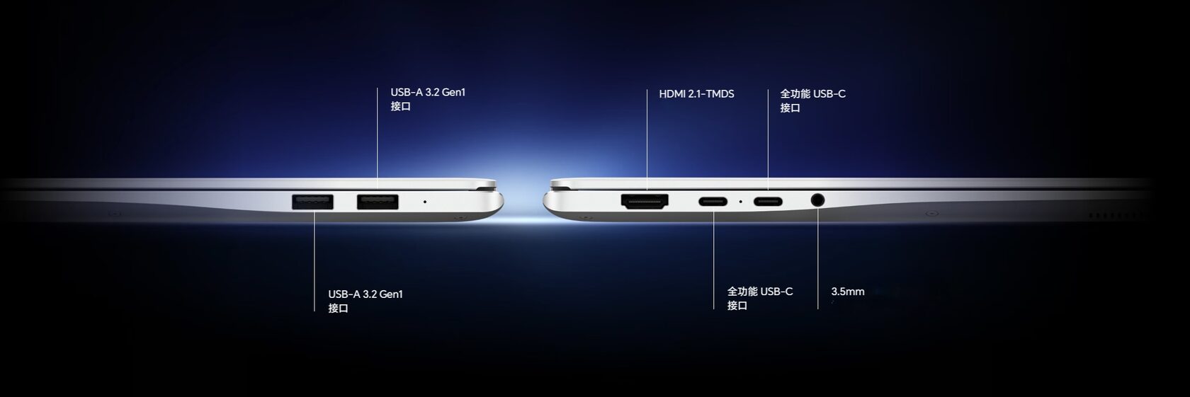 - Слева: HDMI 2.1 TMDS (поддерживает 4K 60 Гц), USB-C 3.2 Gen1 и комбинированный аудиоразъём.